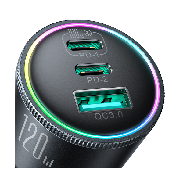 Joyroom JR-CCN07 KFZ-Ladegerät 120 W 2xUSB-C USB-A + USB-C-Kabel 100 W, Dunkelgrau (JR-CCN07)