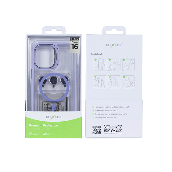 Startseite » Rixus Classic03 Magnetic Cover MagSafe Schutz-Hülle mit Ständer für iPhone 16 Plus inkl. Kamera-Schutzglas, hellviolett